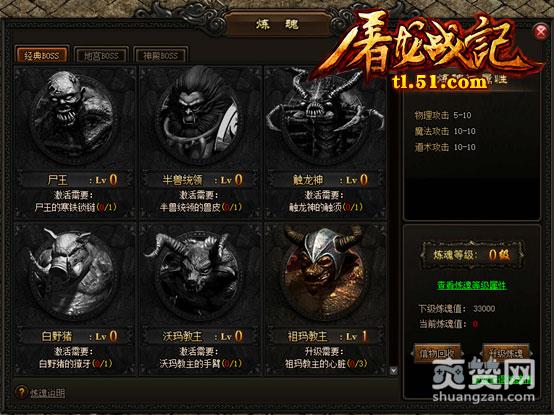 玩家击杀BOSS后除了拾取BOSS掉落的奖励一定不要忘记去搜集BOSS的信物,搜集BOSS的信物可以在炼魂界面中进行激活来获得强力的属性加成