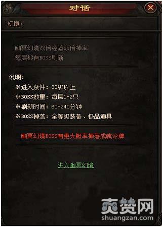 在游戏里,玩家在幽冥幻境地图里挂机是可以享受到双倍经验和双倍掉率的哦,BOSS身上可是带着全等级装备和极品道具,是不是很心动啊!