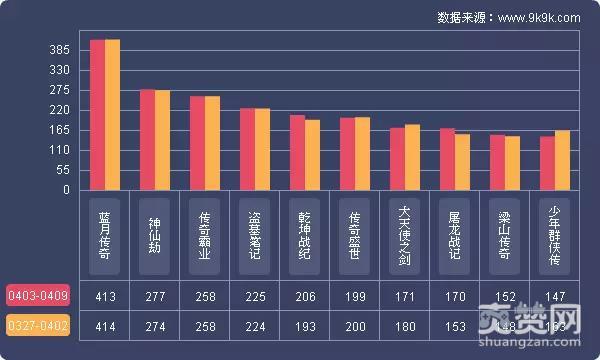 本周上榜游戏整体开服趋势均保持平稳,其中《乾坤战纪》开服总数较上周增涨6.7%,榜单排名上升至第五。此外《梁山传奇》重归榜单,其开服数微增2.7%。