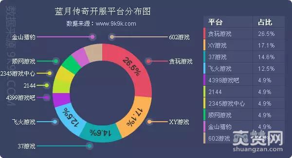 点评:本周《蓝月传奇》开服稳定,各平台开服占比基本未发生改变;新增分布占比平台金山猎豹,开服频率2服/天。