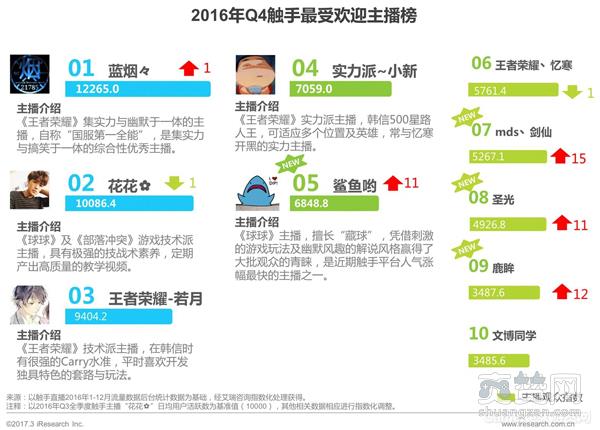前艾瑞与触手联合发布了《2016年中国竞技手游指数报告》。这份报告的主要内容包括了2016年Q4竞技手游行业分析及年度数据,并发布了具有市场说服力的季度与年度排行榜单。