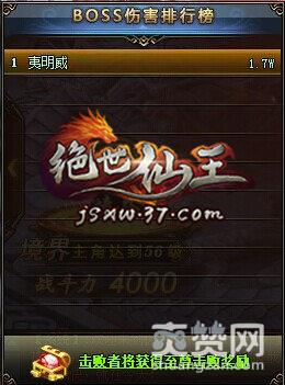 BOSS之家不仅仅只有厮杀,挑战完还有丰厚的奖励送给玩家哦!在所有37《绝世仙王》的玩家攻击BOSS的过程中,当前界面左侧的【BOSS伤害排行榜】会实时显示当前所有正在攻打该BOSS的玩家的累计伤害输出,而最终系统会按照每个玩家的累计伤害输出和最后一击来进行奖励计算。