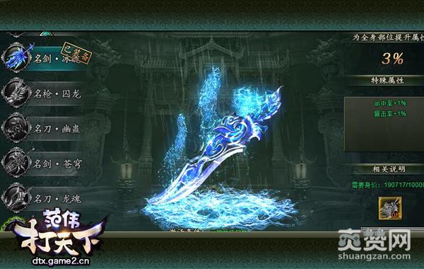 在《范伟打天下》中,玩家的武器都可以幻化成不同的神器外观。通常情况下,拥有神器外观的装备都会比原来的外形大得多,自然可以起到无与伦比的吸睛作用了。如果你想撩妹,推荐你使用名刀断浪或者名剑苍穹,前者可以展现你无上实力,后者则可以凸显你的财力!