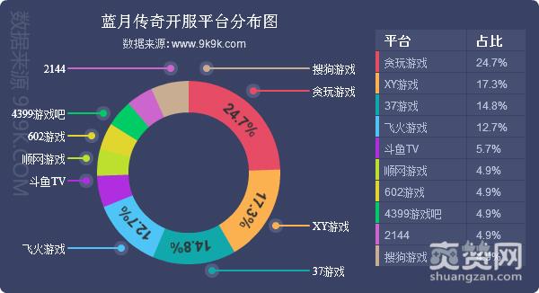 点评: 本周《蓝月传奇》开服总数减少了2.7%,但整体开服形势保持稳定;新增分布占比平台斗鱼TV,日开服频率为2服/天。