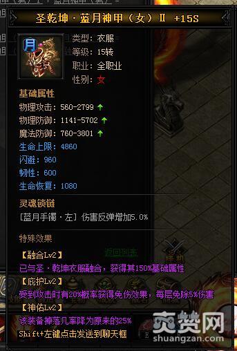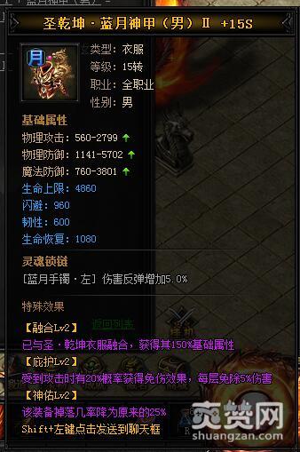 按照上述公式,就能合成圣乾坤·蓝月神甲II,下面再让我们看一下它有哪些独特的属性和特殊效果吧。