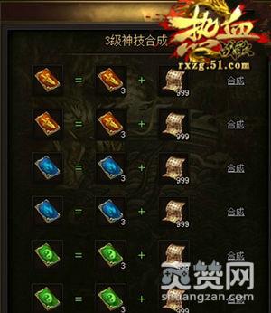 在51《热血战歌》中,任何职业的玩家都可以合成三级神技。目前三级神技包括战士的3级擒龙手,3级狮子吼;法师的3级寒冰掌,3级流星火雨;道士的3级飓风破,3级气功波。