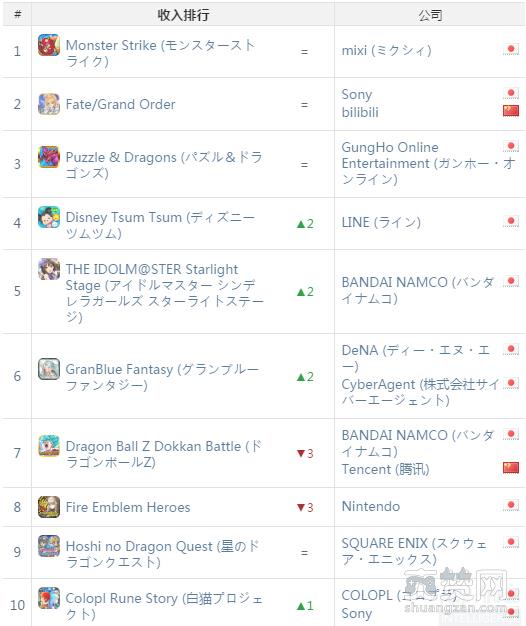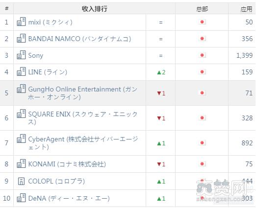 最后再来看一下公司收入排行,mixi、BNE以及索尼继续霸占榜单的前三位。LINE和GungHo的名次发生交换,分别位列第四和第五。相对来说日本地区畅销榜的排名已经基本固化,很难出现新的面孔。