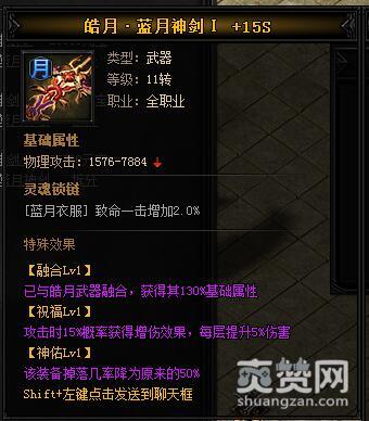 皓月·蓝月神剑I+15000元宝=皓月之刃+蓝月神剑