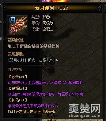 拆分的方法是到神炉处,点击蓝月神兵中的神剑神甲,然后在弹出的对话框中选择一项。这里我们选择的是蓝月神剑I。