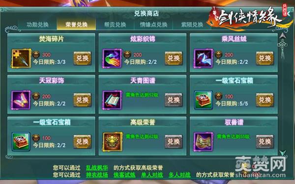 说了那么多竞技方面的内容,肯定有很多小伙伴按捺不住的问奖励在哪儿。在侠客试炼里,达到一定排名便可获得一定的荣誉和绑元奖励,消耗一定的荣誉点数可以在商城里兑换一些超级实用的道具,让角色的战力变得更强。