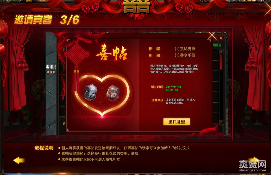 新婚之前总是要安排好一切的,现在,让我们来了解一下具体的婚礼步骤吧。首先,必定是异性人物,咳咳,腐女们就暂且在脑海里描画一下吧。玩家可在商城购买戒指,那么接下来,就去月老那里像你心爱的她求婚吧~