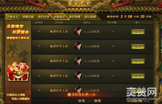 那就来吧,看看本服盛会上的玩家们都拿出些什么宝贝来鉴定呢?传世玉玺,依次品鉴,千万不要辜负了一天10次的品鉴机会。