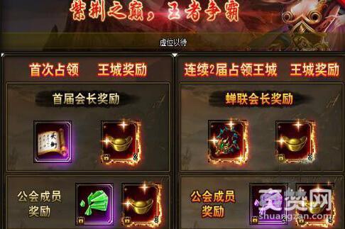 合服王城活动给大家带来了许多极品道具和装备,首次占领王城的话,会长会员都会获得元宝奖励,公会长更有秘籍相送。如果蝉联霸主,奖励则更为丰富,公会长更能赢取绝世项链,为下一次的胜利垫下根基!