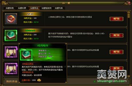 可以使用贡献在仙盟商店中购买道具,道具有每日购买上限。仙盟等级越高,仙盟商店的道具种类越丰富,稀有度越高。