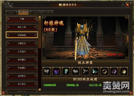 主要显示各个等级boss刷新的位置、刷新时间和boss的掉落,等级越高的boss难度越大,爆出的材料也就越好,所以遇到难度较高的boss时一定要组队去打,最好三职业都有,这样效率最高。