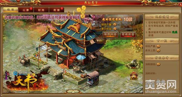 (1)住宅系统,在线时间越长,收益的铜钱越多。并且住宅的等级越高,产出越多。