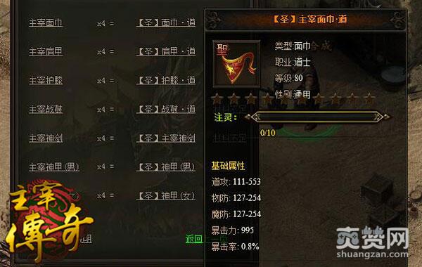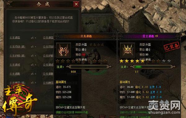 老王可以帮你把面巾、肩甲、护膝和战鼓碎片合成为完整的职业装备,化零为整,变废为宝是老王的职业追求;老王还可以将主宰系列的部分装备转化为“圣”系列的主宰套装,再转化为“至尊”级别的主宰神装!