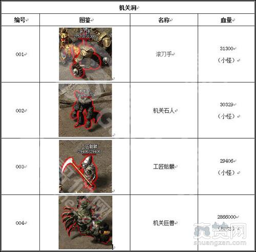 怪物:滚刀手、机关石人、工匠骷髅,以及BOSS机关巨兽