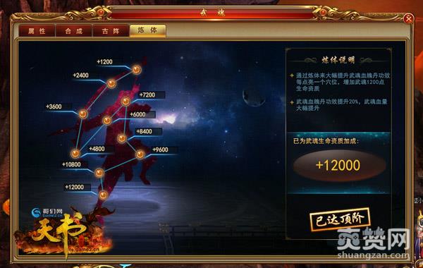 在哥们网《天书世界》,玩家可以通过培养,将潜力点转化为武魂属性。而想要获取更多武魂生命,自然是以增加武魂生命属性为培养目的即可。