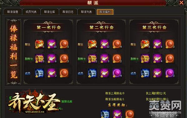 如果你所在的帮派为服务器前三,那么恭喜你每周还能额外获得大量的实用性道具!经验、坐骑进阶丹、羽毛、转生卷轴样样都不少!