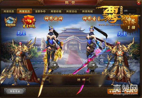 在37《西游伏妖篇》的阵营官员界面中,将展示该阵营当前4位官员,他们可不是轻轻松松就能当上官员的哦!玩家为战神和圣主点赞可获取奖励,而有官职的成员可点击左下角按钮领取每日奖励,右下角按钮则可查看其他两界的阵营官员界面。