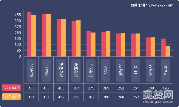 点评: 本周运营平台开服排行前三:360游戏、37游戏、搜狗游戏;西游网开服总数大涨70.4%,重回榜单;此外360游戏和37游戏顺位互换,飞火游戏和4399的名次对调。本周榜单平台共开服3201组,占一线平台开服总数57.3%;其中开服前三平台共开服1359组,占榜单开服总数42.5%。