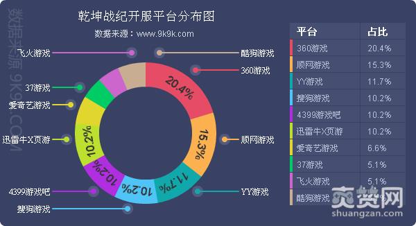点评: 《乾坤战纪》本周开服数略有下降,但整体开服形势稳定,新增分布占比平台飞火游戏,开服频率稳定在1服/天。