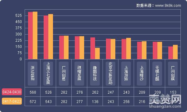 点评: 本周网页游戏研发商开服排行前三:浙江盛和、上海三七互娱、广州创思;趣酷科技新上榜,旗下代表作《神印王座》发展态势良好。本周榜单研发商共开服2975组,占一线平台开服总数53.2%,该占比较上周增涨了0.9%;其中开服前三研发商共开服1376组,占榜单开服总数46.3%。