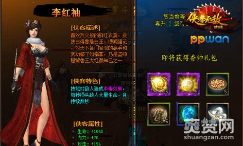 李红袖喜欢烈火般的鲜红衣裳,皮肤白得像是白玉,博闻强记,对天下各大门派的高手和武功都了如指掌,乃是盗帅楚留香的三大红颜知己之一!在ppwan《楚留香新传》中,李红袖可对敌人造成中毒效果,每秒都可以使敌人损失大量的生命,持续数秒。各位大侠在游戏中完成50级主线任务就可以获得哦!