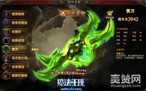 什么是诸神圣物?传说中的魔尊秘典、潘多拉魔盒、宝莲灯、麻痹戒指、蛋刀、圣天使之剑、至尊屠龙、紫薇轩辕剑等八大类别都属于此类范畴。看到中西方圣物汇聚在51《魔法王座》诸神圣物系统内,你是否感受到强大能量正在召唤呢?每激活一个圣物你将会感受到天地造物的鬼斧神工,变化无穷。无论是攻击还是防御,抑或是控制型圣物,都有着自身强大的专属特性,当然获取方式也千变万化。想要诸神圣物都为你所用,就必须满足获取它们的条件,比如想拿至尊屠龙就需要花费88元宝激活白银VIP喔!51《魔法王座》,开启诸神圣物为你打开一个天地间奇幻的魔法圣器库。