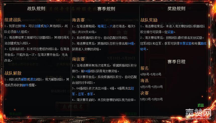 海选(4月15日~5月10日)跻身跨服前64强进入争霸。