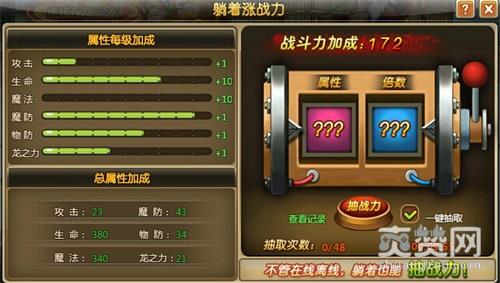 镶嵌龙魂可以提升玩家的属性,龙魂的品质越高,那么为玩家提供的属性加成越多.镶嵌的龙魂越多,那么玩家所能获得的属性也就越多.玩家使用丹药也可以提升属性,丹药分为8种,分别是强力丹、生命丹、魔法丹、坚韧丹、魔抗丹、力量丹、智力丹、敏捷丹.