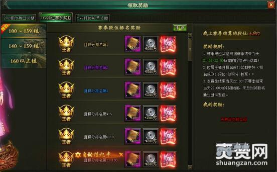 奖励一共分为:每日、赛季和称号三种奖励。当日比赛不满5场的玩家没办法获得每日段位排名奖励,段位排名一共有积分和银币两种财富。