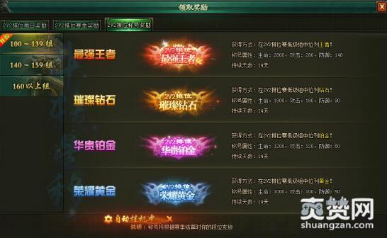 除了2V2排位赛季奖励外,傲天盗墓笔记游戏里还有排位称号奖励。无论你是100~139这组还是140~159这组,或者是160以上的组,都可以获得最强王者、璀璨钻石、华贵铂金、荣耀黄金等称号。不同称号持续14天,增加生命、攻击、防御等多重属性。
