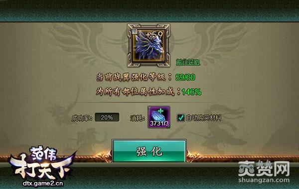 1、玩家激活战翼后,可对战翼进行强化!战翼强化等级越高,对所有部位属性加成越大!