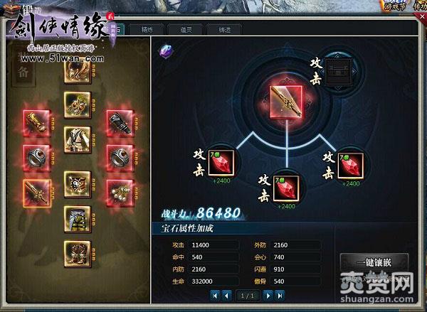 这次51wan《剑侠情缘2网页版》还开放了宝石系统,更是助各位玩家一臂之力,大增属性和法力。游戏中共有8种宝石,分别为生命、外攻内攻、命中、外防、内防、闪避、会心、傲骨。游戏中玩家镶嵌不同的宝石可增加玩家不同的属性。最大的亮点在于宝石等级上限开放至20级,并且玩家可通过合成宝石来升级。注意,宝石的激活要综合全身宝石的等级哦!