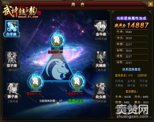 51《武神赵子龙》的游戏角色达到一定的等级后可以在角色面板开启对应的星座。