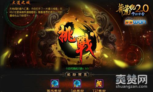 天地间的道力汇集,为你打开了一片道之域境,玩家可以在里面接受道境的磨练,随着境界的提升,玩家的道域也会不断的提升。在ppwan《莽荒纪》里,大道之域玩家每天都可以挑战,但是奖励却根据挑战结果而划分,分为固定奖励、S级奖励和VIP奖励,若是玩家能在1分钟内通过挑战就可以获得固定奖励和S级奖励,若还是VIP,那么三大奖励都将被你收入囊中。