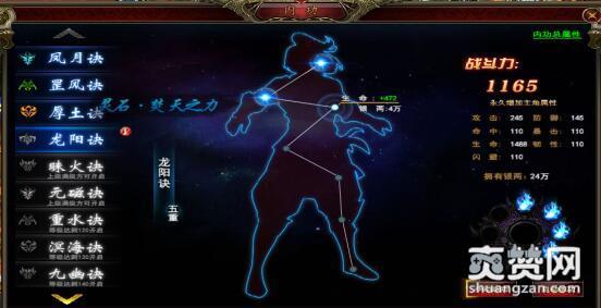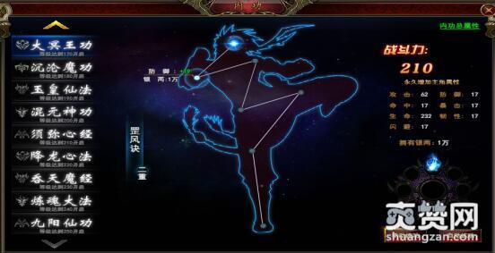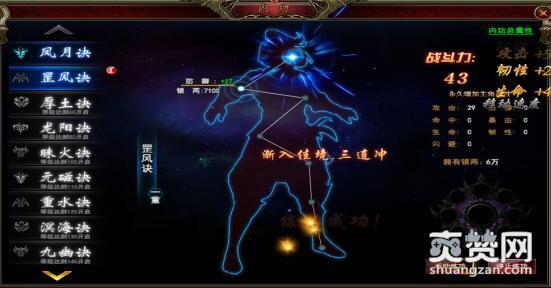 打开内功系统,20重内功心法就摆在你眼前;千万不要晕菜,每一重心法又有八层境界,每一层境界需要持续消耗银两来点亮多个内功穴位。傲天完美红颜初级内功共分为:风月诀、罡风诀、厚土诀、龙阳诀、昧火诀、无磁诀、重水诀、凕海诀、九幽诀等九大诀窍,能修到九幽诀在江湖上已经算是上流水平了。