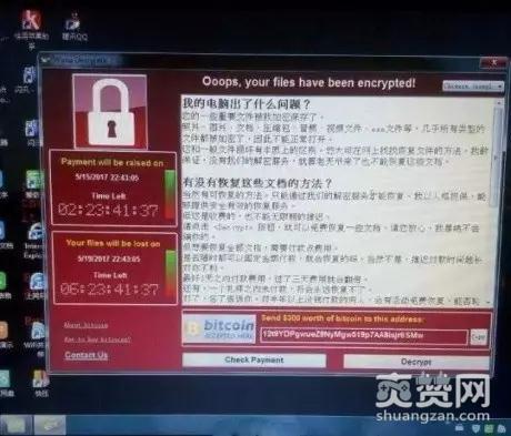 WannaCry病毒已经波及上百个国家的数十万台电脑,并且仍在蔓延。据受害者描述,病毒被激活后的10秒之内所有文件都被加密,并且屏幕上显示索要赎金的信息和倒计时。黑客向用户勒索价值300美元的比特币,三天内未收到赎金,索要金额翻倍,七天未收到,就会把文件删除,相当于永远失去了文件。