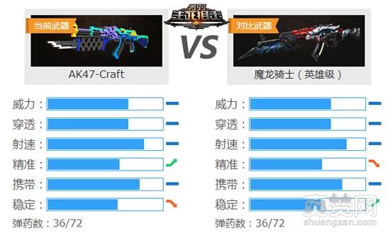 与魔龙骑士的属性相比,在威力、穿透和射速这三大属性上,AK47-Craft都与英雄级武器的魔灵骑士持平。也就是说,这款新武器的威力不容小觑。作为AK47家族的一员,稳定性上还是带着遗传特点的,相对魔龙骑士来说略逊一筹,不过在精准上扳回了一城,很适合点射爆头的大神们哦。