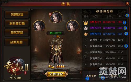 9377《赤月传说2》玩家可在战队界面内消耗1000元宝创建由自己命名的战队,并邀请两位好友加入战队。战队积分将参与全区全服积分排名,进入前八名的玩家在结算时获得战队排名称号奖励。9377《赤月传说2》战队积分达到对应级别如白银、黄金、白金、钻石和王者分段时,可领取阶段积分奖励!!