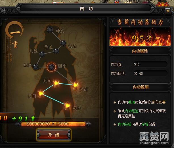 一重升级膻中所需内功经验:15000,初始内功值:545,内功抵伤:30.4%。