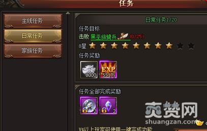 每环日常任务将有不同的星级代表其任务品质,任务品质越高,完成之后获得收益也就越高,玩家可通过消耗一定数量的元宝提高任务品质。玩家若觉得完成任务过于麻烦,可选择“立即完成”功能,该功能可使玩家角色立即获得当前星级的对应奖励,但同时也需要消耗一定数量的元宝。