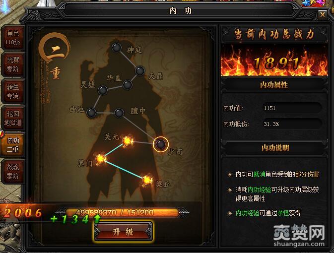 二重升级少商所需内功经验:151200,初始内功值:1151,内功抵伤:31.3%。