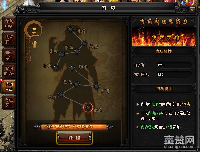 三重开启。至此为止,内功值1776,内功抵伤32%。