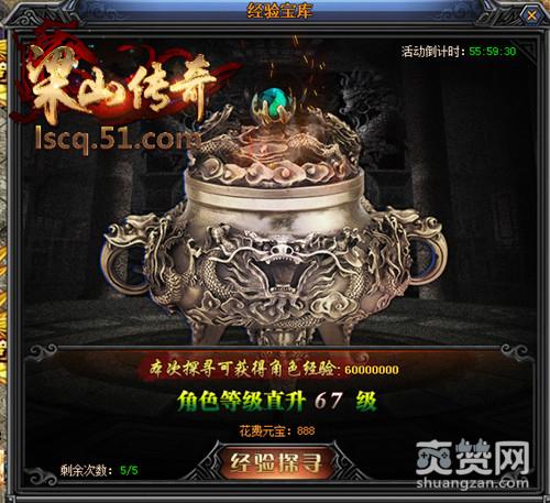 游戏开服前三天,经验宝库是一个十分重要的经验来源,花费少量元宝,获得海量经验,就是一个字:爽!