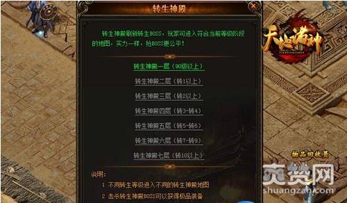 但想要转生,又怎么可能那么容易,转生神殿共分为七层,不同的转生等级可进入的转生地图也不同,对玩家来说,转生圣殿是获取极品装备的重要来源哦。