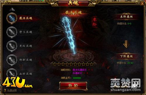 在43u《热血战歌》中,兵魂系统一直是后期提升玩家们各项实力的重要途径之一,兵魂系统中共有五种兵魂,其中怒斩兵魂是我们接触最多的,而怒斩兵魂可以提升玩家们的攻击属性,满阶为十阶,可以增加玩家360-750的攻击力。