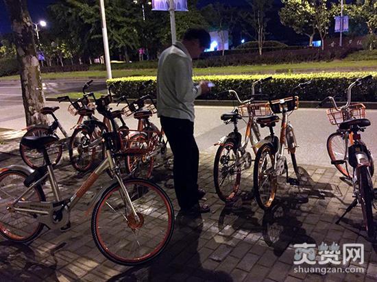 已经骑着一辆单车的中年男子,正在寻找另一辆“红包车”。